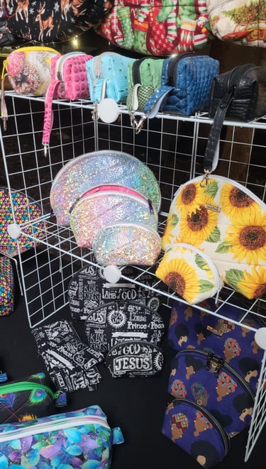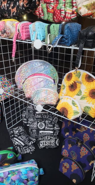 Both pouches are neatly quilted and come with quality zippers. The larger one can serve as a makeup bag, eye glasses holder or a pencil case. The smaller pouch is usually intended as a coin wallet, but it can also be used to carry your feminine products while on the move. THESE POUCHES CAN BE PURCHASED AS A SET OR INDIVIDUALLY.